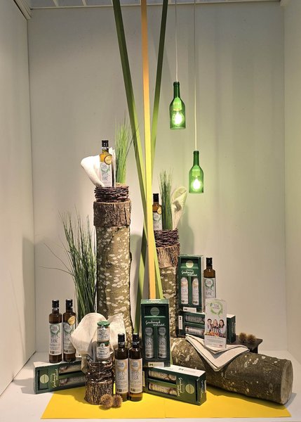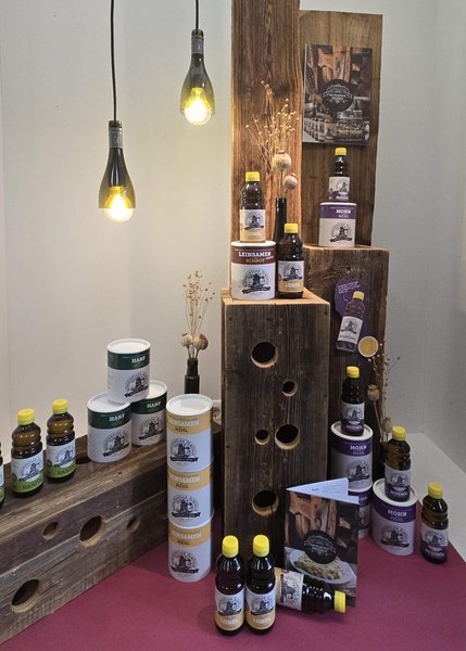 Die Präsentationen der regionalen Produkte im gesamten Schulgebäude waren nicht nur optisch ein Genuss, sondern auch ein Paradebeispiel für gelebte Nachhaltigkeit. Im Rahmen der Unterrichtsfaches Werbetechnik wurden alte Paletten und Fässer zu Tischen für die Produktpräsentation umfunktioniert. Mit viel Liebe zum Detail und auf die Produkte abgestimmtes Storytelling wurden die Erzeugnisse der Genussland Partner:innen perfekt in Szene gesetzt. Durch besondere Produktplatzierungen können angehende Regionalitätsmanager:innen auch im Geschäft den Fokus gezielt auf regionale Produkte lenken.