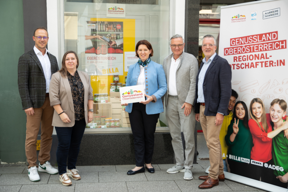 In Zusammenarbeit mit der BS3 Wels wurden heuer zwei Genussland-Schaufenster mit regionalen Produkten bei BILLA in Bad Ischl gestaltet. Ziel des Projektpraktikums war es, authentische Produkte in geprüfter Qualität und Herkunft an internationale Tourist:innen in der Kulturhauptstadt zu vermitteln. Dabei wurden ausgewählte Produkte der Genussland OÖ Handelspool Produzent:innen präsentiert und regelmäßig ausgetauscht. Auch im Markt wurden von den jungen Talenten verkaufsfördernde Maßnahmen sowie eine Verkostung umgesetzt.